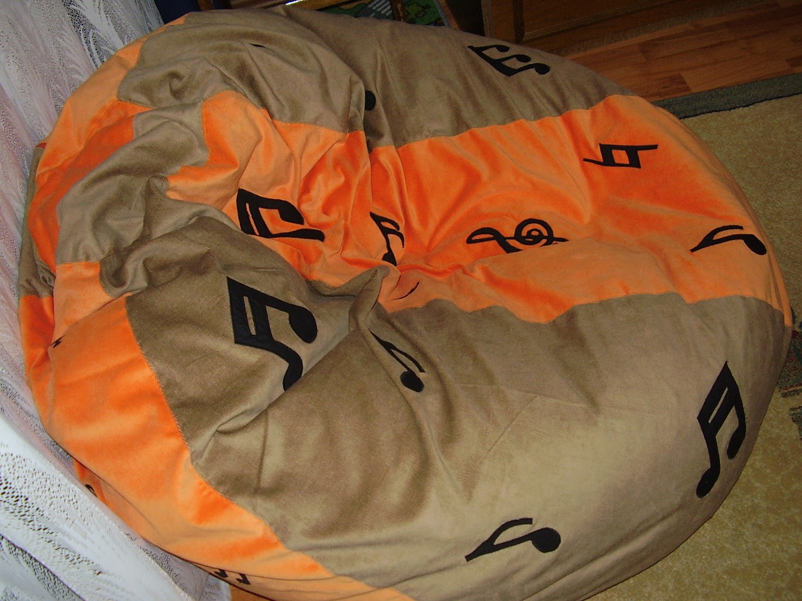 Rég nem jelentkeztem, de ennek oka nem a tétlenkedés volt, épp ellenkezőleg. Nagyon sokat dolgoztam az év vége felé. Hátizsákokat, táskákat varrtam, és a nagy lányomnak készült egy különleges meglepetés. Kitaláltam, hogy babzsákfotelt készítek neki, egy különleges, egyedi babzsák fotelt. El is terveztem mindent, hogy narancssárga, mogyoró lesz a színe, és mivel Ági életében a zene nagyon sokat jelent, úgy gondoltam, hogy zenei jelek és hangjegyek lesznek ráapplikálva. A polisztirol gyöngy beszerzésénél kértem segítséget a keresztszüleitől, akik le is csaptak a remek lehetőségre, és kitalálták, hogy megfinanszírozzák, és legyen ez egy közös karácsonyi ajándék. :) 300 liter polisztirol golyócska kevésnek bizonyult, kell még bele legalább 100 liter, amit majd névnapjára fog még kapni Ági. Remélem úgy már jobban kiadja majd a formáját. :))))